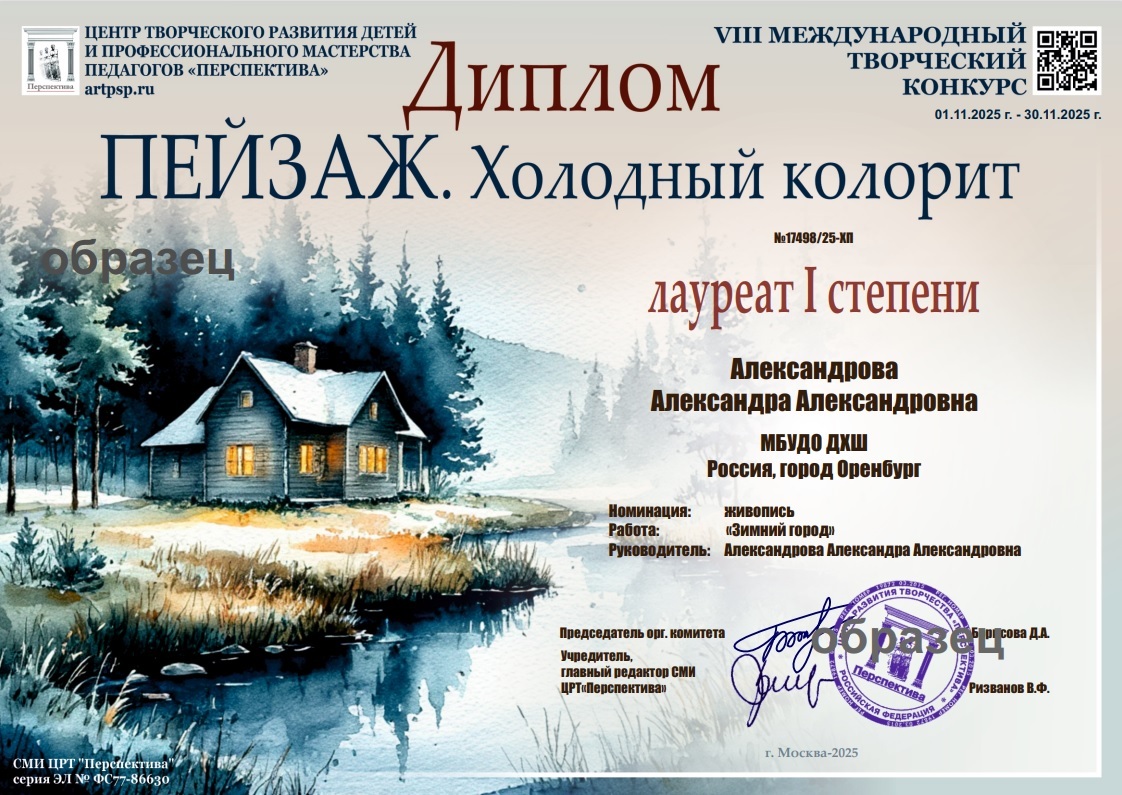 3.2. Победители конкурса награждаются именными дипломами оригинального дизайна I, II или III степени VIII Международного творческого конкурса «Пейзаж. Холодный колорит»;
