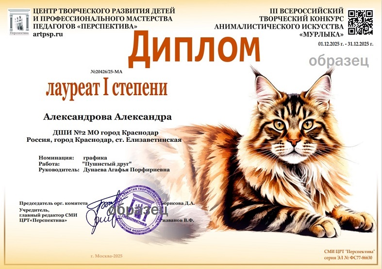 3.2. Победители конкурса награждаются именными дипломами оригинального дизайна лауреатов I, II или III степени III Всероссийского творческого конкурса «МУРЛЫКА».