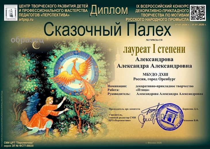 3.2. Победители конкурса награждаются именными дипломами оригинального дизайна лауреатов I, II или III степени IX Международного творческого конкурса "Сказочный палех";