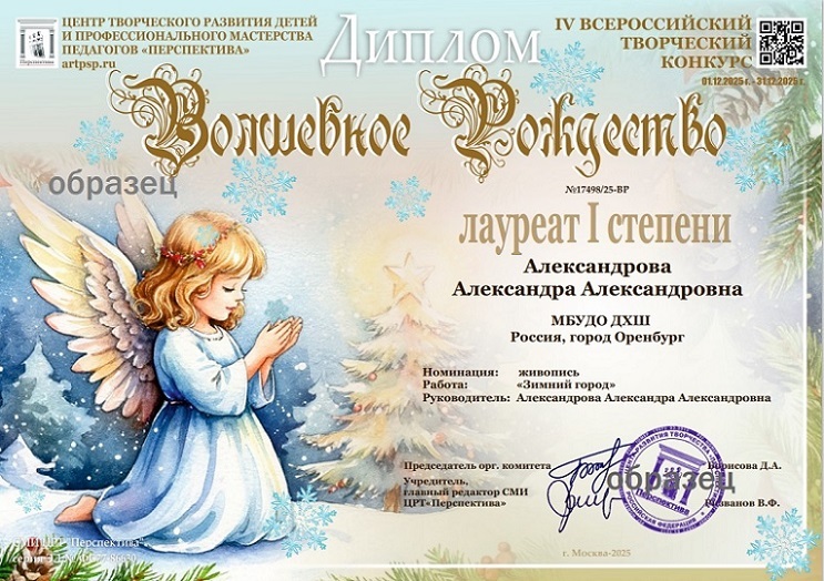 3.3. Призеры конкурса награждаются именными дипломами оригинального дизайна лауреатов I, II или III степени IV Всероссийского творческого конкурса для детей и взрослых «Волшебное Рождество».